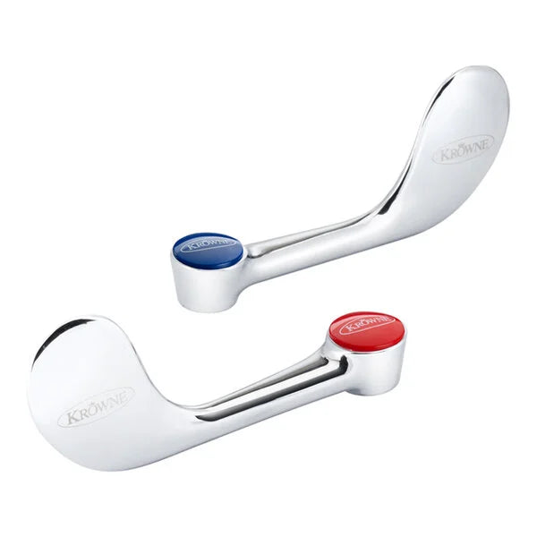 If you need a reliable replacement for your faucet, choose this Krowne Royal Series wristblade handle kit. This product is a direct replacement for the original handles on select Krowne Royal Series faucets, or it can be used as an add-on for a faucet. It is compatible with all Krowne faucets. This unit includes two screws and two 4" wristblade handles. One handle has a hot indicator and the other has a cold indicator for easy use.
